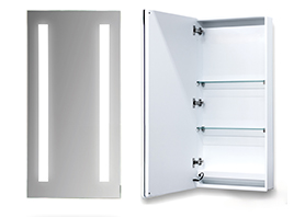 The Amber lighted cabinet mirror combines Aluminium and sheet metal for lightweight and easy to install