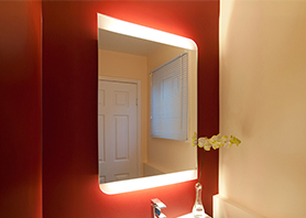 The Amy backlit mirror is the ideal solution for minimal lighting for your powder room.