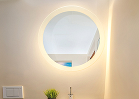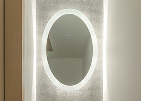 The Beta backlit mirror is an oval backlit mirror that can be mounted onto any ceiling.