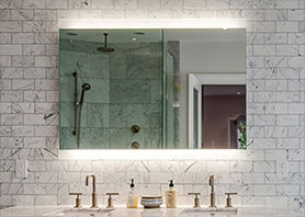 The Clara backlit mirror has lighting that encompasses the entire fixture for great room lighting.